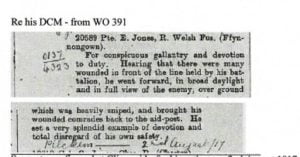 The report of his death appeared in the paper initially on 4th May – an unofficial report from the chaplain who had conducted the funeral. It was confirmed officially.on 11th May 1918, quoting a letter of condolence from the local MP, John Herbert Lewis, and a comrade, Sgt Sutton, who commented that he had fully expected Corporal Jones to be awarded the V.C., that he was “one of the bravest men in the division” and that “officers and men thought the world of him”.