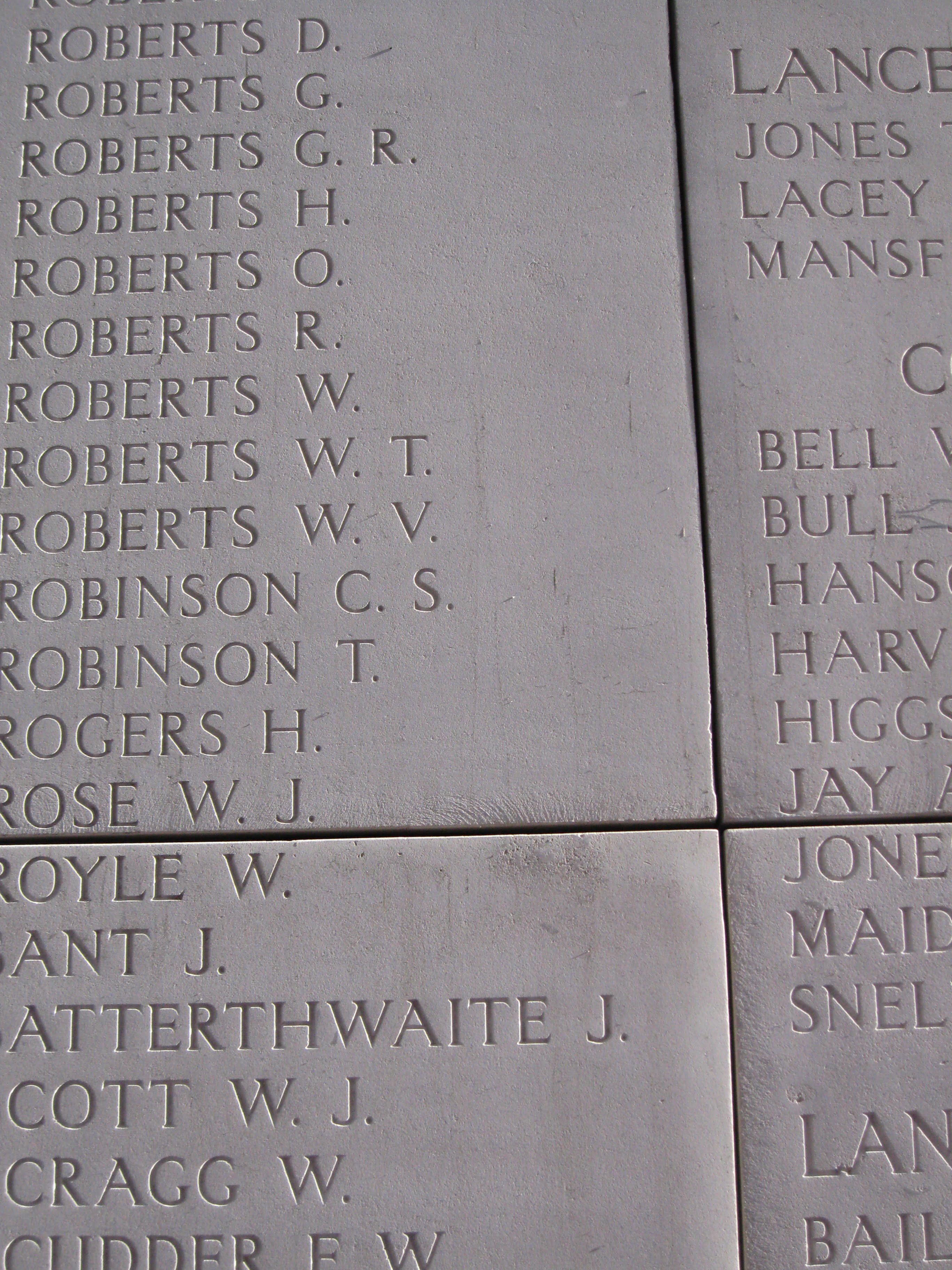 The CWGC records 15 soldiers from the RWF 10th Btn. Killed on March 3rd and buried at Spoilbank or remembered on the Menin Gate. In the RWF War Diaries, Thomas was reported “missing, reported killed” on the 2nd March, apparently as part of a successful action by the Battalion to regain trenches that had been captured by the Germans on February 14th. Glyn Roberts and the others had just returned to the dugout from this action when it was hit by the shell.