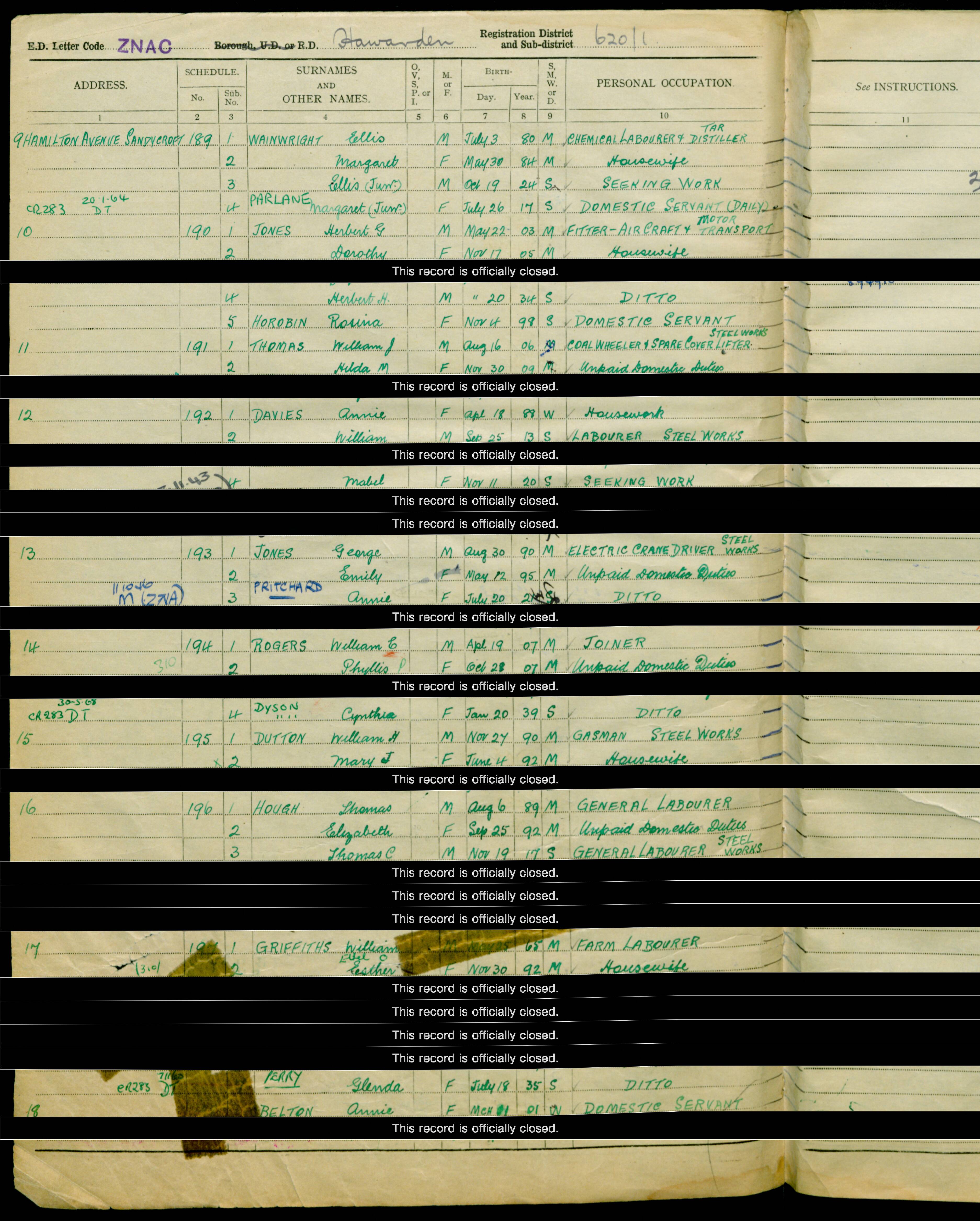 1939 Register – Dutton Household (2 People)