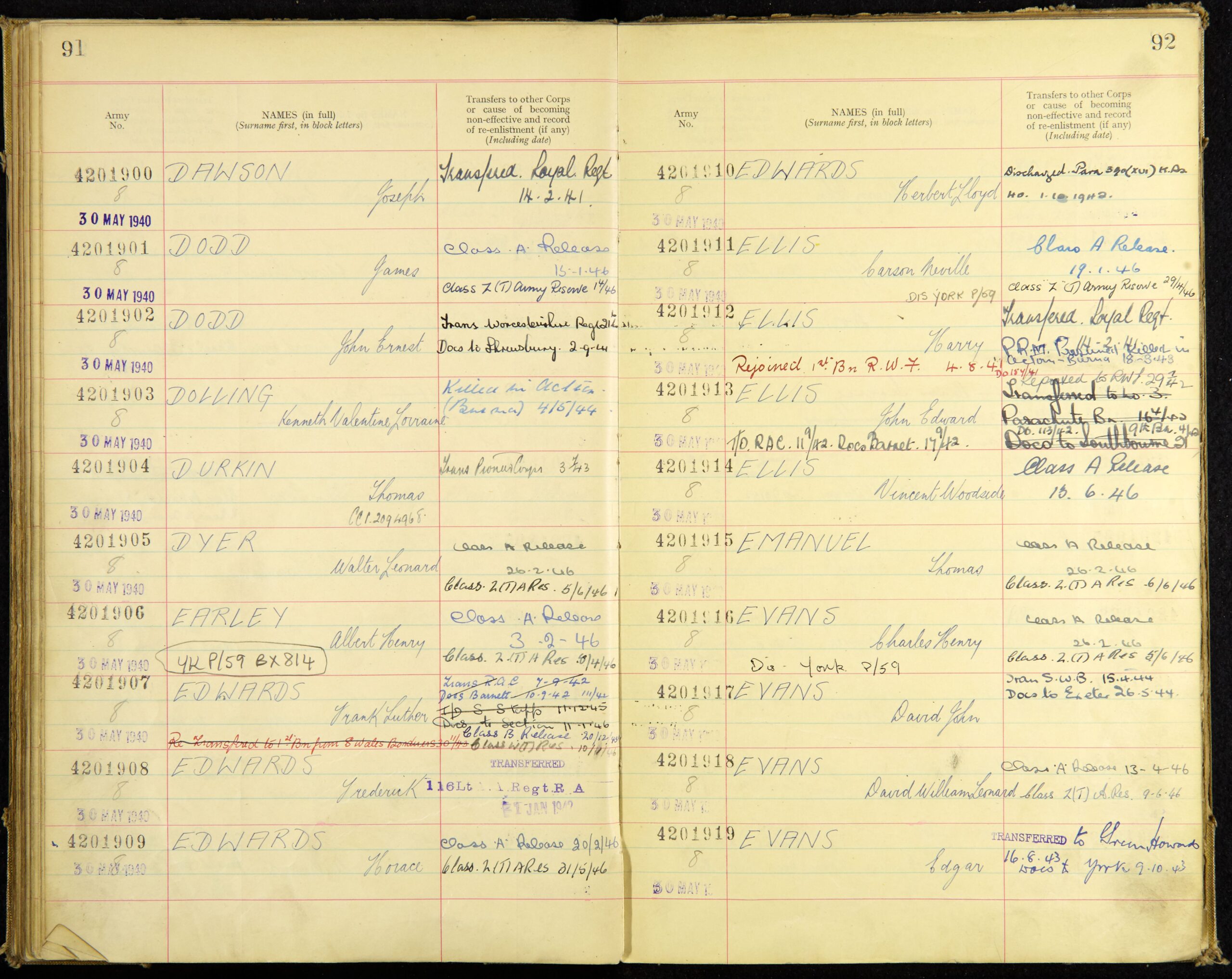 4201912 ELLIS, Fus. H. ( Previous List 1109) Missing 18th March 1943 – Date of Casualty 18th March 1943.