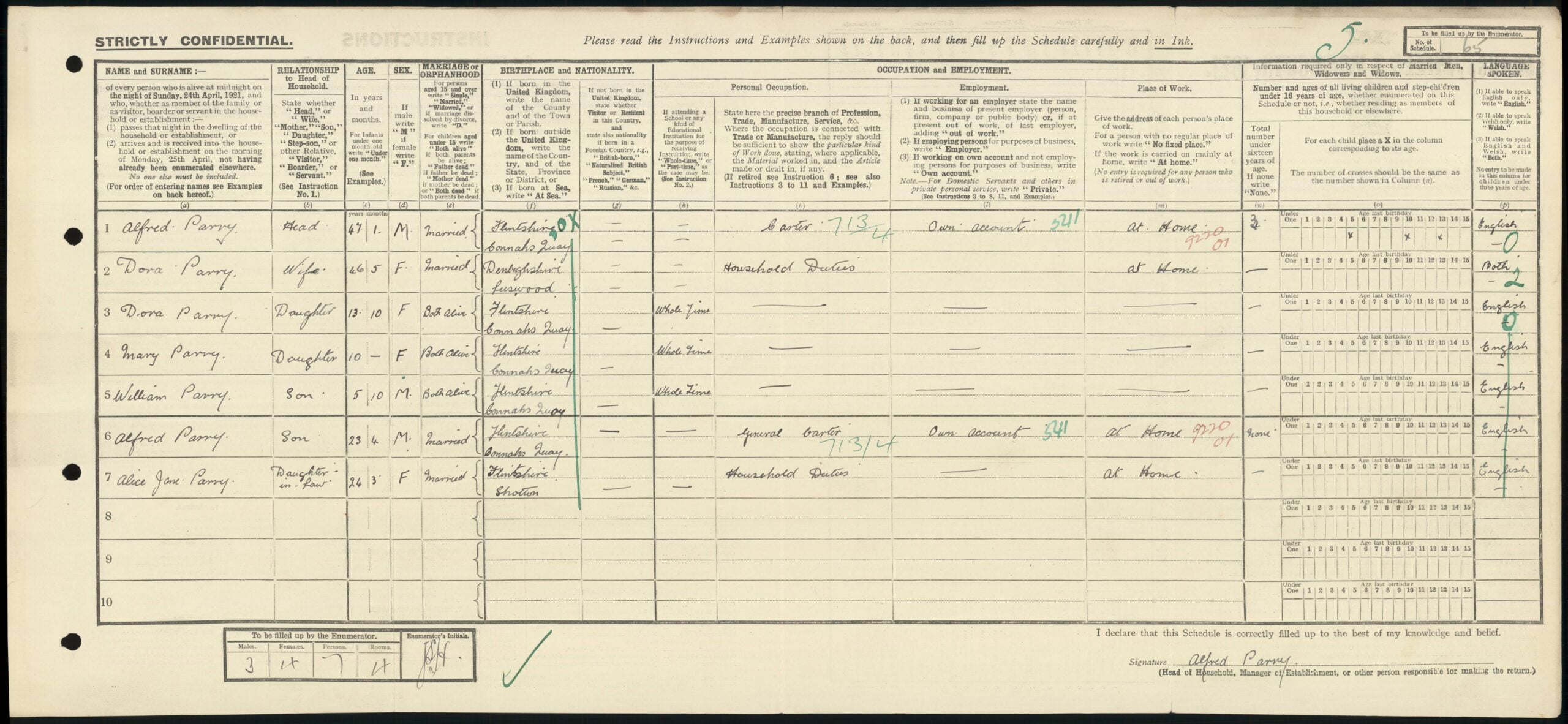 *Alfred Parry (Jnr.) Contractor on the 1939 Register – William and Dora’s brother.
