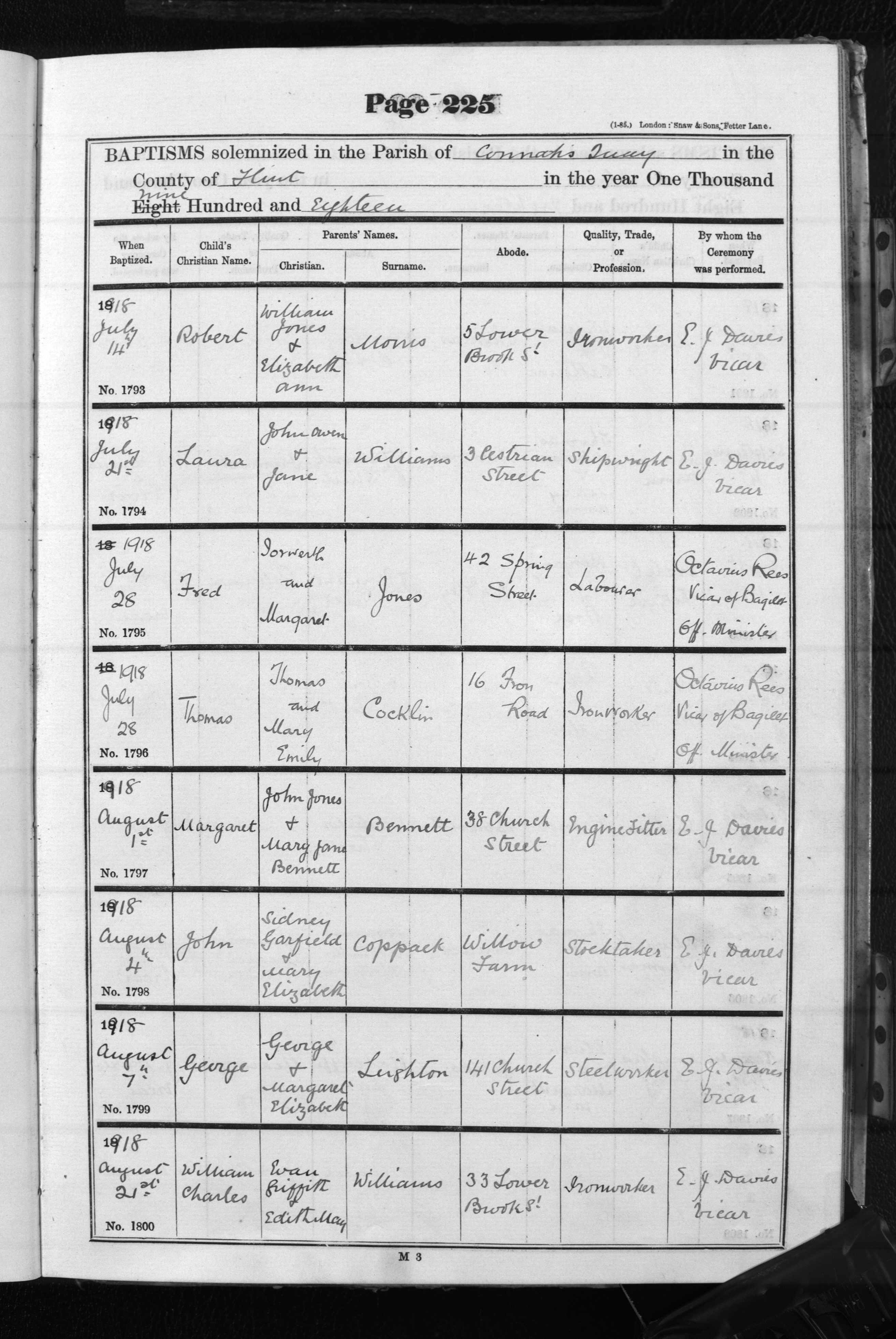 I also found at St, Mark’s Church, Connah’s Quay – Page 225 No. 1800 21st August 1918 William Charles, s/o Evan Griffith & Edith May Williams, 33, Lower Brook St., Ironworker.