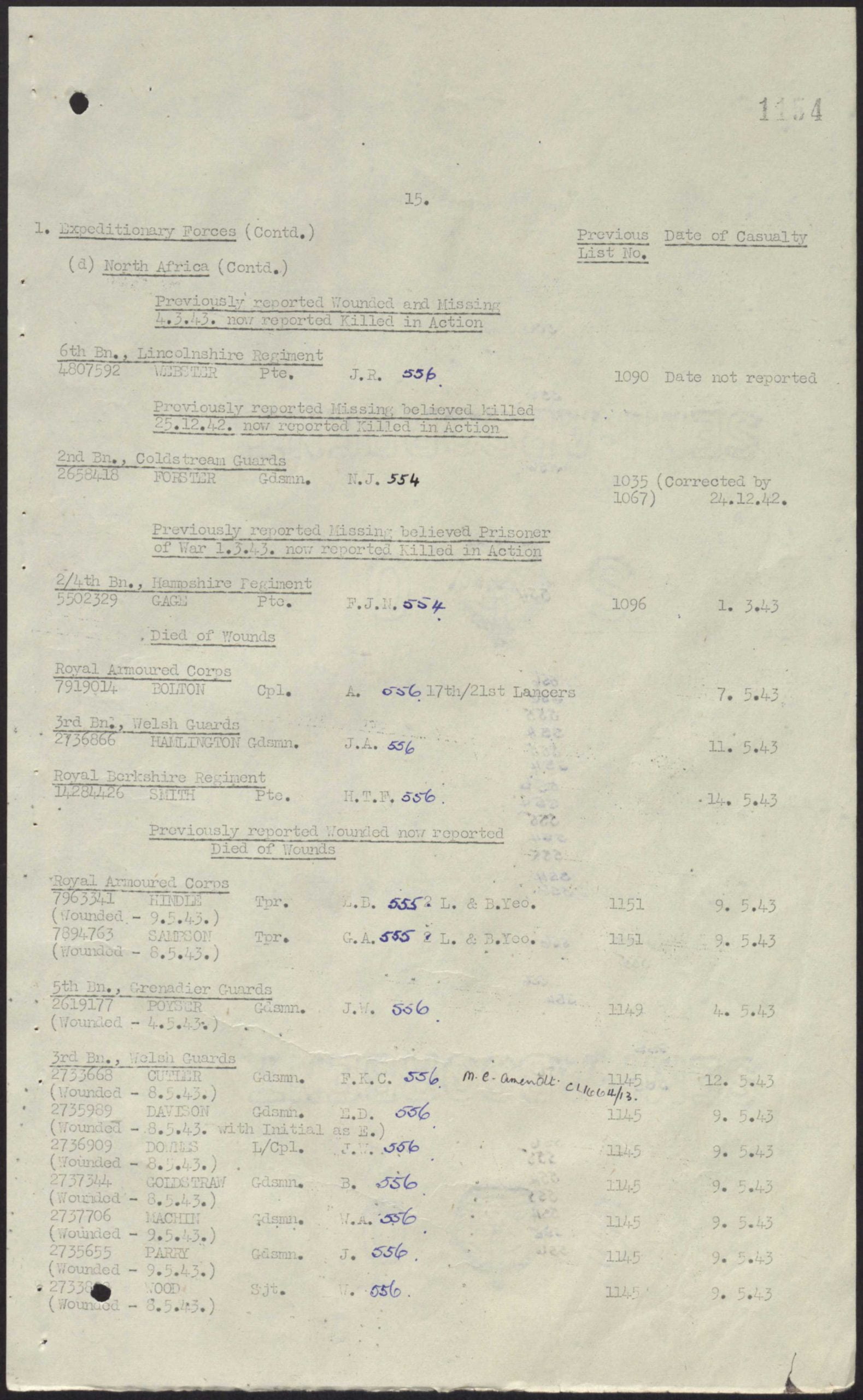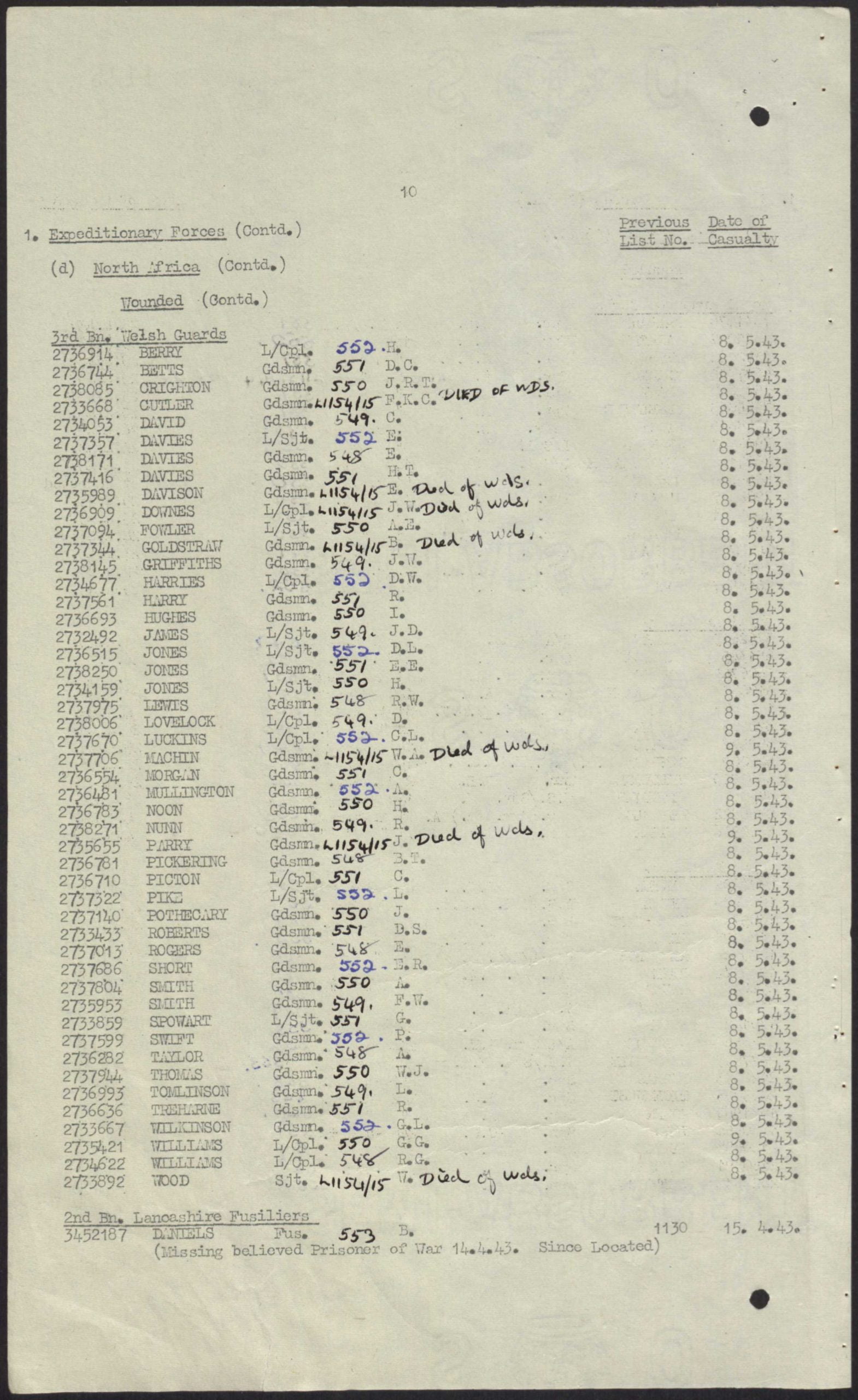 According to the Casualty List 1145 Page 10, Ellis was wounded on the 8th May 1943 and then Casualty List 1154 Page 15, tells us the sad news that he died on the 9th May 1943.