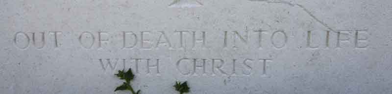He is buried in Merville Communal Cemetery in France. His father requested the following inscription on his gravestone: “Out of Death into Life with Christ”