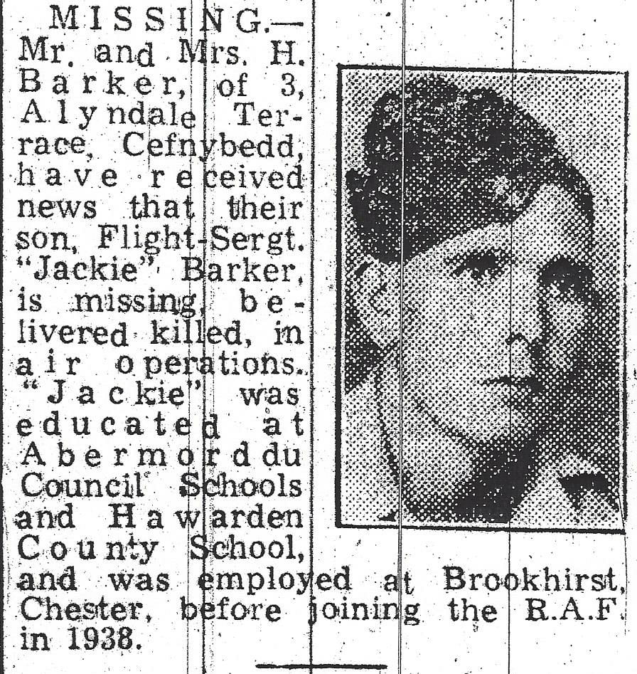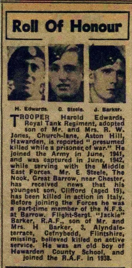 John Samuel was sadly missed by his family and young widow, they had only been married just over 2 years. They made sure he was remembered by adding his name to the Hawarden Grammar School Roll of Honour. Herbert Barker, died, I believe, in the December quarter of 1953 (Denbighshire Vol. 8a Page 390) and also Mary Barker , I believe, died in the June quarter of 1954. (Wrexham Vol. 8a Page 426).