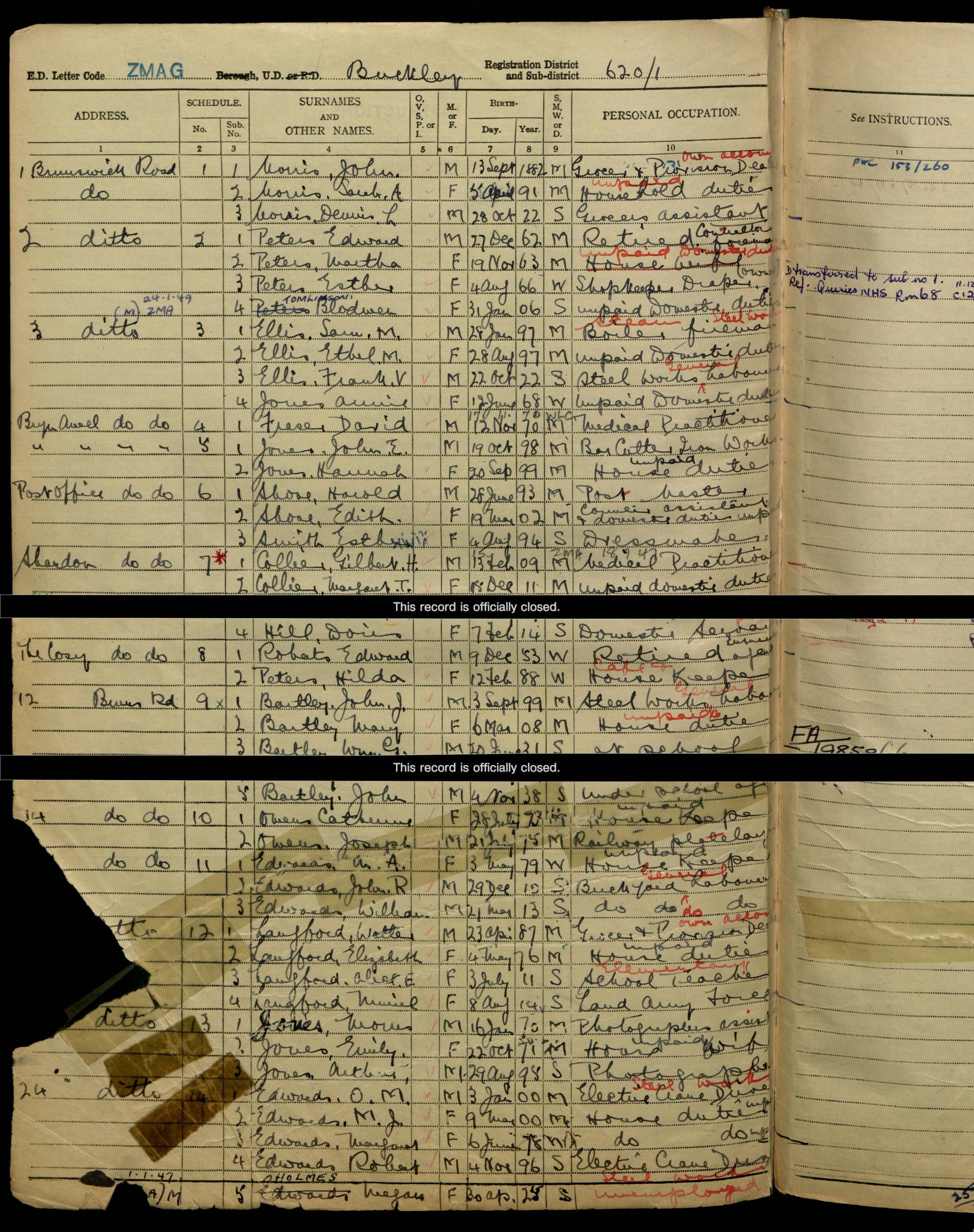 Then we see the family on the 1939 National Register (Taken on the 29th September 1939) when they were living at Brunswick Road, Buckley U.D., Flintshire, Wales. This source tells us that Walter Langford’s birth date was the 23rd of April 1887 and he was a Grocer & Provision Dealer, Elizabeth was born on the 4th of May 1876 and as most women on this register are described, if they didn’t have a job, was doing “Unpaid House Duties.” Their daughters were Alice E. Langford, born on the 3rd of July 1911 and was an Elementary School Teacher and single, and Muriel* who had been born on the8th of August 1914 and was in the Land Army Force and single.