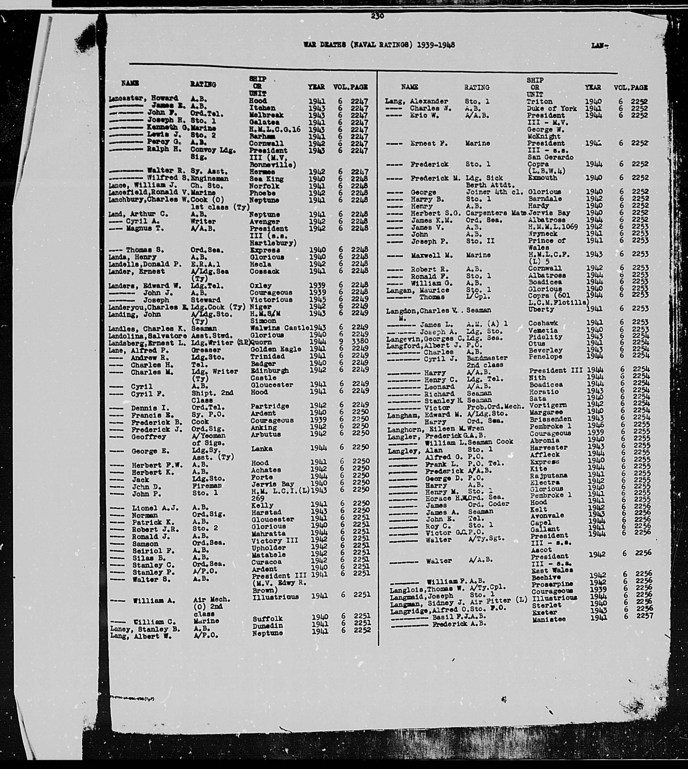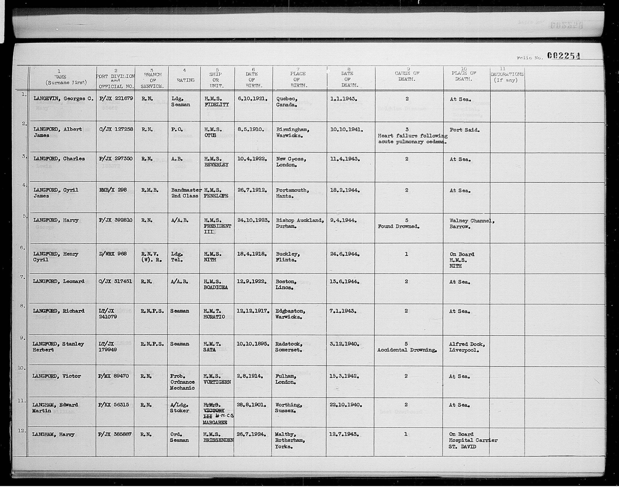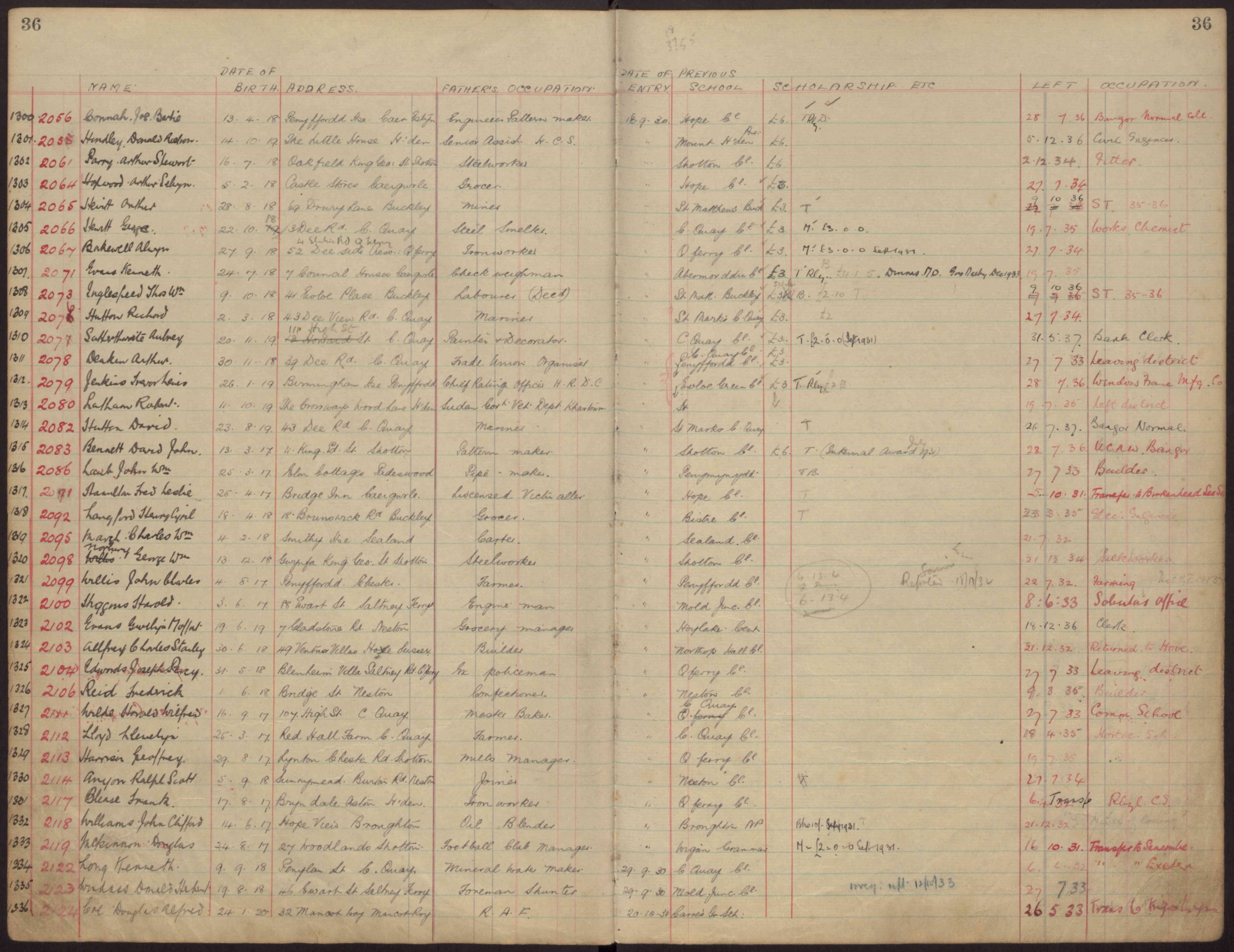 1318/2092 LANGFORD, Henry Cyril, Date of birth – 18th April, 1918, 18, Brunswick Road, Buckley, Father’s Occupation Grocer,Bistre Cl. Date of entry 18th September 1930, date of leaving – 23rd March, 1935 – Electrical Engineer.