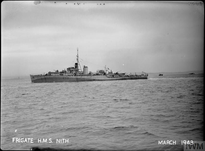 His destiny was to be posted to H.M.S. “NITH,”(K 215) which was commissioned on the 16th February 1943, thanks to https://uboat.net/allies/warships/ship/105.html