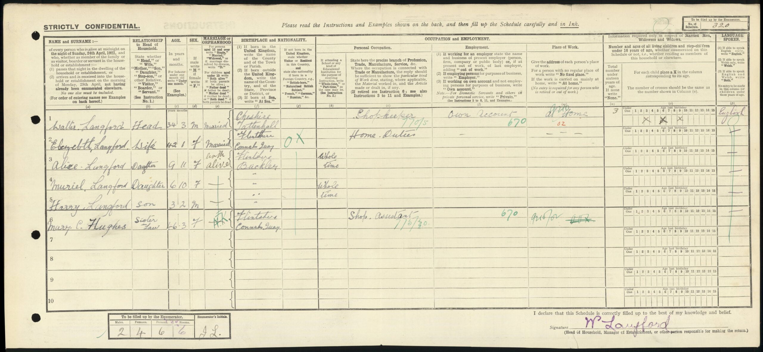 We see young Henry Cyril Langford for the first time on the 1921 census, which was taken on the 19th of June 1921. He is living with his family in Brunswick Road, Buckley. Head of the household was Walter Langford, now aged 34 years and 3 months, he had been born in Tattenhall, Cheshire and was a Shopkeeper on his own account at home. His wife, Elizabeth Langford was now 42 years and 1 month old and had been born in Connah’s Quay, she was doing ‘Home Duties.’ Their children were Alice Langford, 9 years, and 11 months old, Muriel Langford, 6 years, and 10 months old and Harry Langford, 3 years, and 2 months old, all born in Buckley, Flintshire. Elizabeth Langford’s sister, Mary C. Hughes was 46 years, and 3 months old and had been born in Connah’s Quay, Flintshire, she was a Shop Assistant.