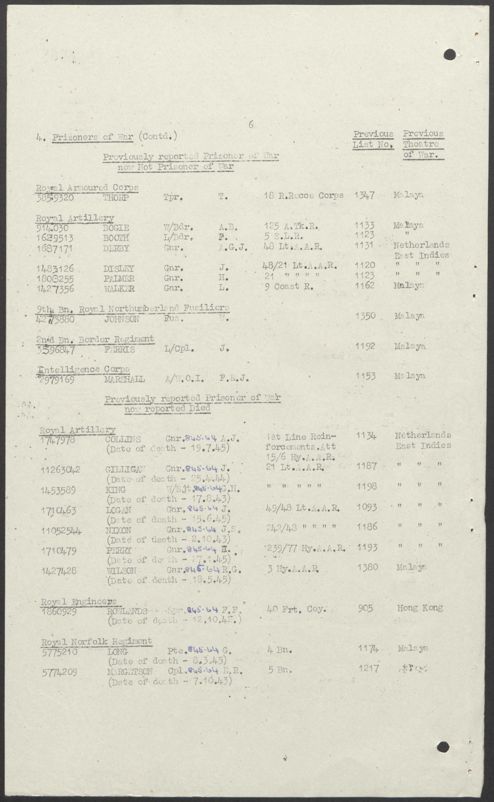 Fred’s Casualty Lists tells us some of the story, he, and thousands of others, were captured on the 25th December 1941 and was being transported to Japan on board the “Lisbon Maru” (please read some of the above websites.)