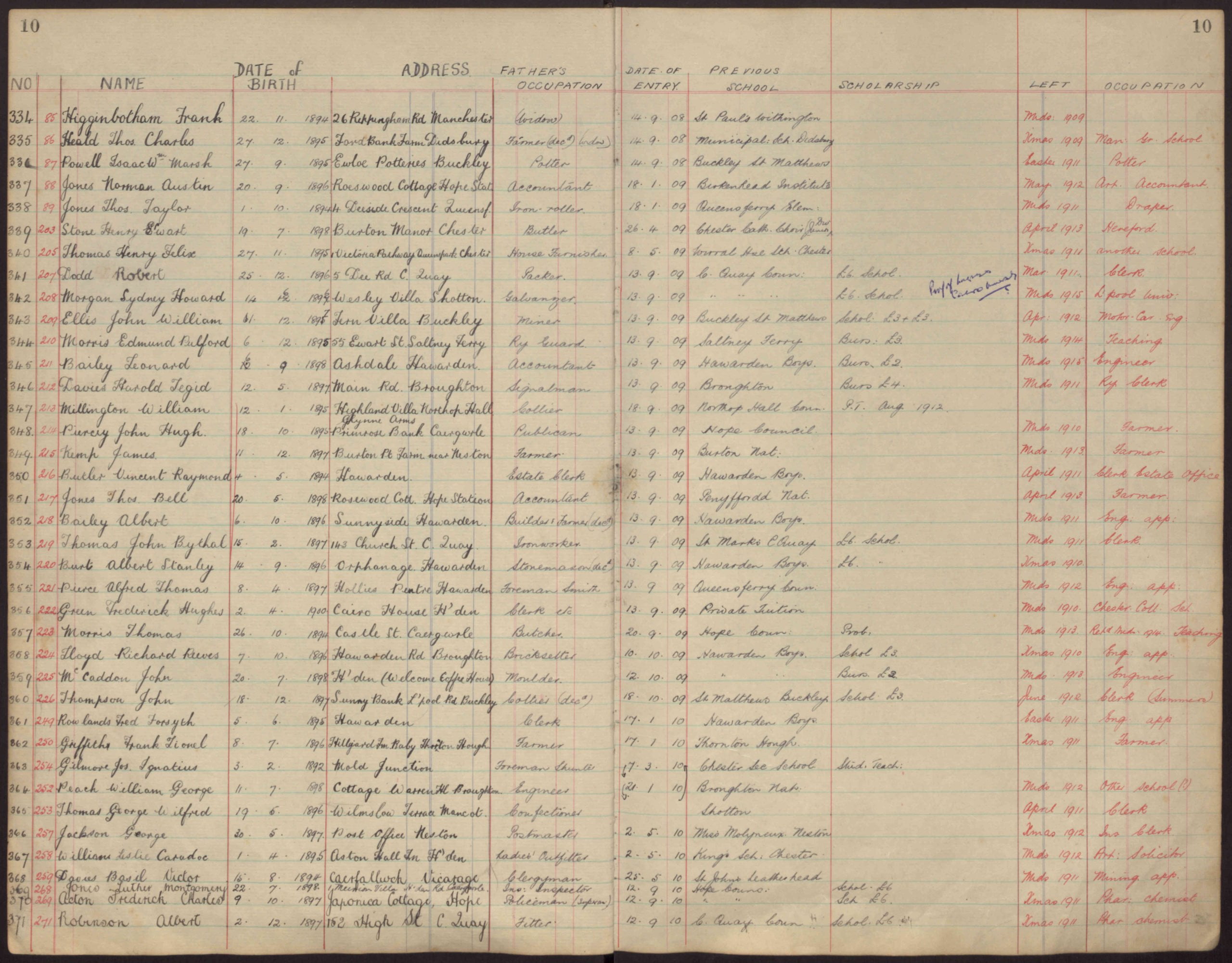 Hawarden Grammar School Admissions Register E/GS/1/10:-