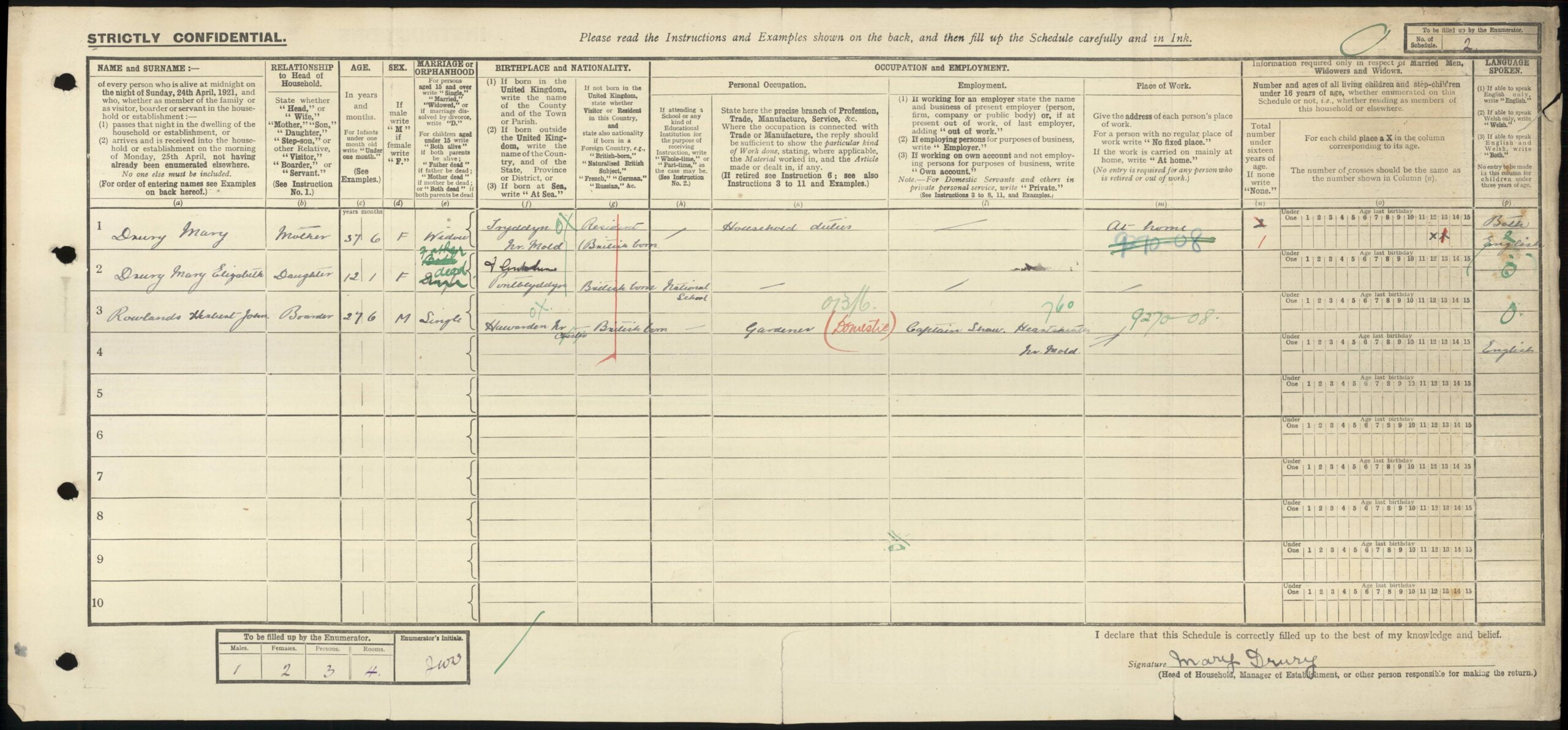 The 1921 census finds Fred Forsyth Rowlands’ siblings living at different addresses. Herbert John Rowlands was a Boarder at the home of Mary Drury and her daughter Mary Elizabeth Drury at 2, Alun Terrace,Pontyblyddyn, Nr Mold, Flintshire, Wales. Herbert John was now age 27 years and was a Gardener (Domestic) for Captain Shaw Heartsmith, Nr. Mold, Flintshire.