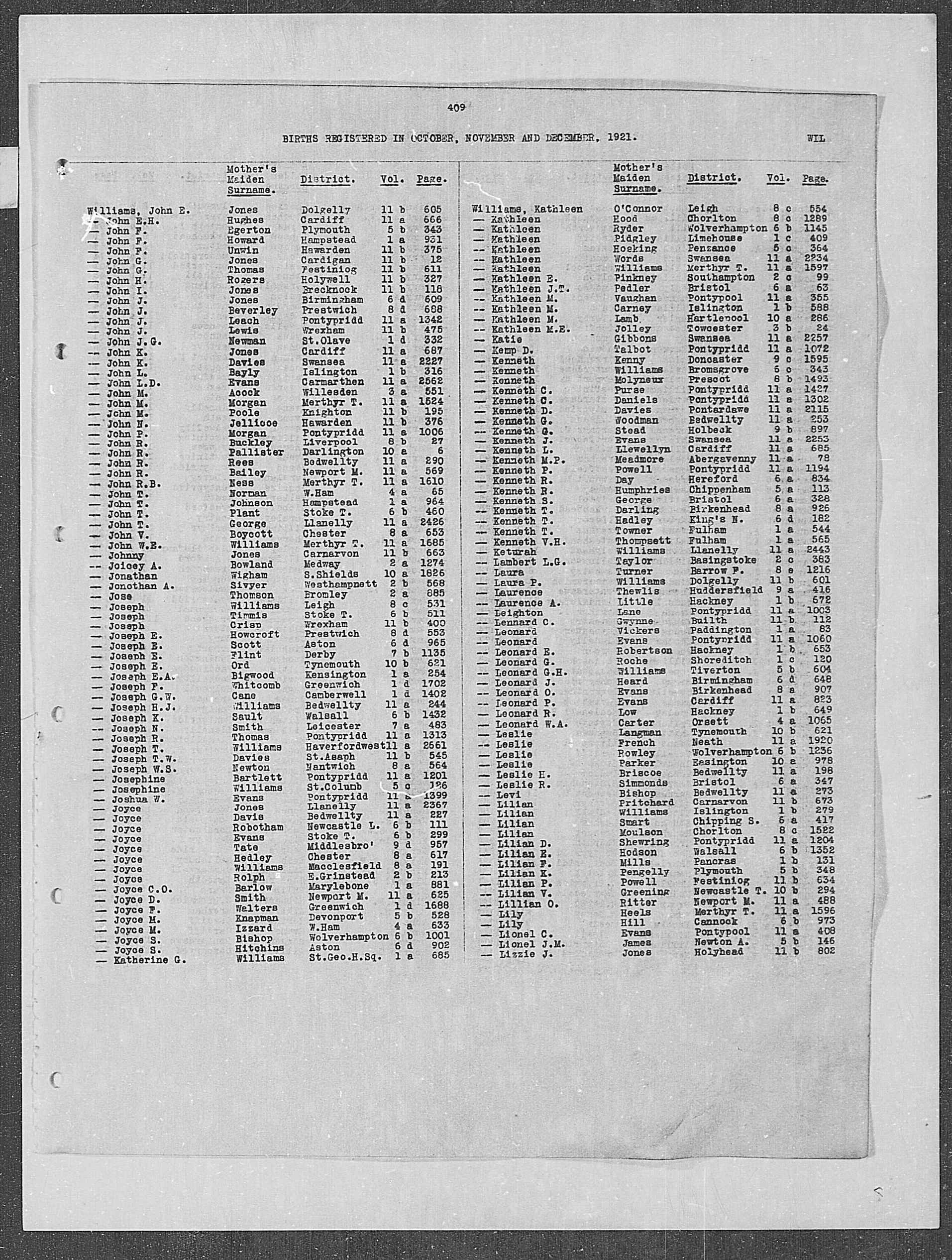 John Frederick Williams was born on the 5th of October 1921, the third son of Gwilym Tregid & Jessie Williams (nee Unwin) who had married in a Civil Marriage or Registrar Attended Marriage in the Chester Registration District in the December quarter of 1917.