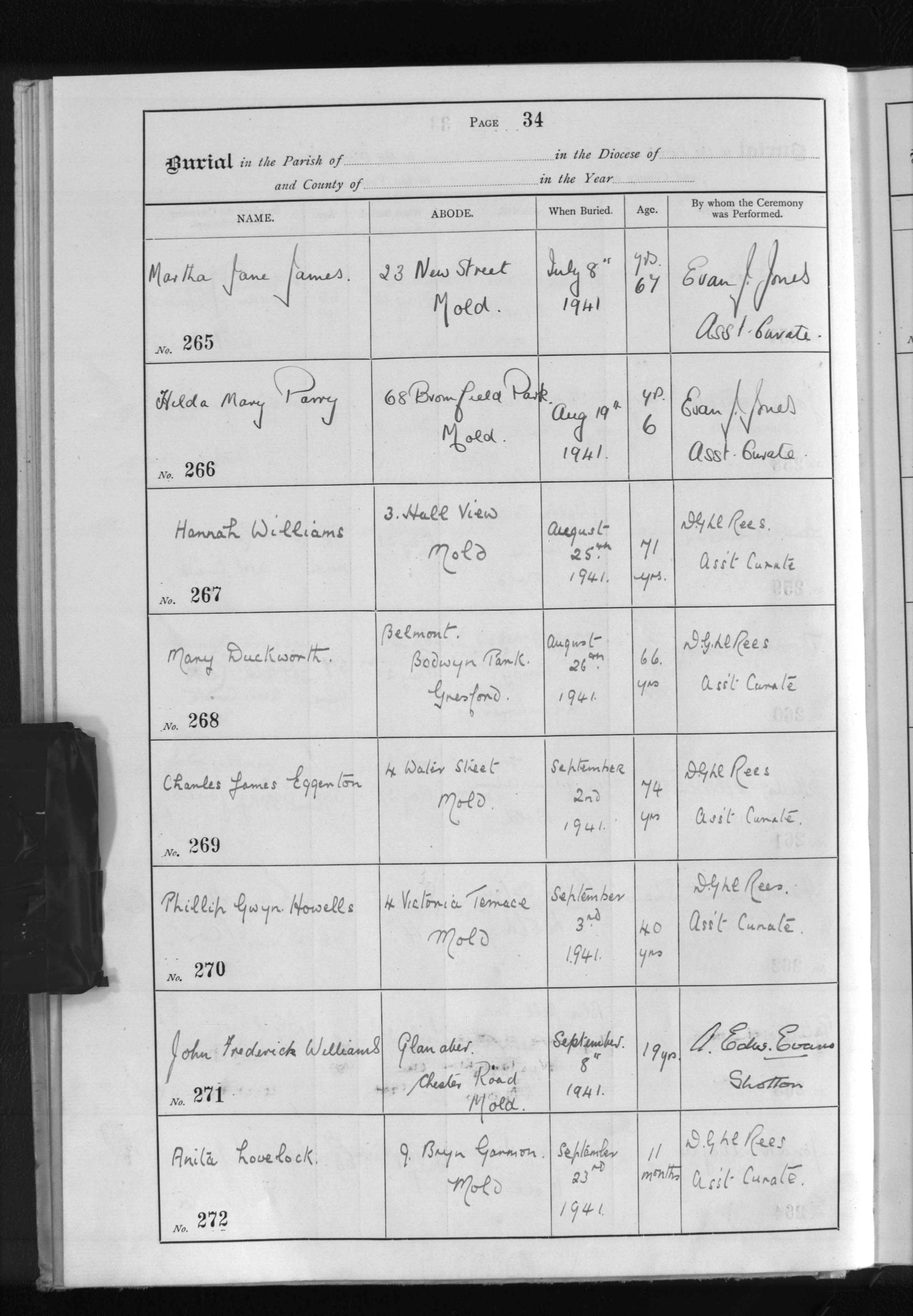 Some of the family members are on the 1939 National Register (Taken on the 29th of September 1939), they were living then at 76 Station Road, Hawarden R.D., Flintshire. This source gives the dates of birth, and we see that the head of the household was Gwilym, who had been born on the 22nd of September 1890 and he was a Bakery Manager, his wife Jessie had been born on the 22nd of January 1895 and as most women who did not have a job, was described as doing “Unpaid Domestic Duties.” Edward U, Williams had been born on the 18th of April 1918, he was single and a Surveyor, Engineers Bridge Builders. There are 2 redacted or closed records, and I believe these to be John Frederick and Gwilym, but why I don’t know, as they show Christopher I. Williams, born the 18th of April 1926, who was at school and younger than the other 2 boys. I have found this anomaly quite a few times on the 1939 National Register.