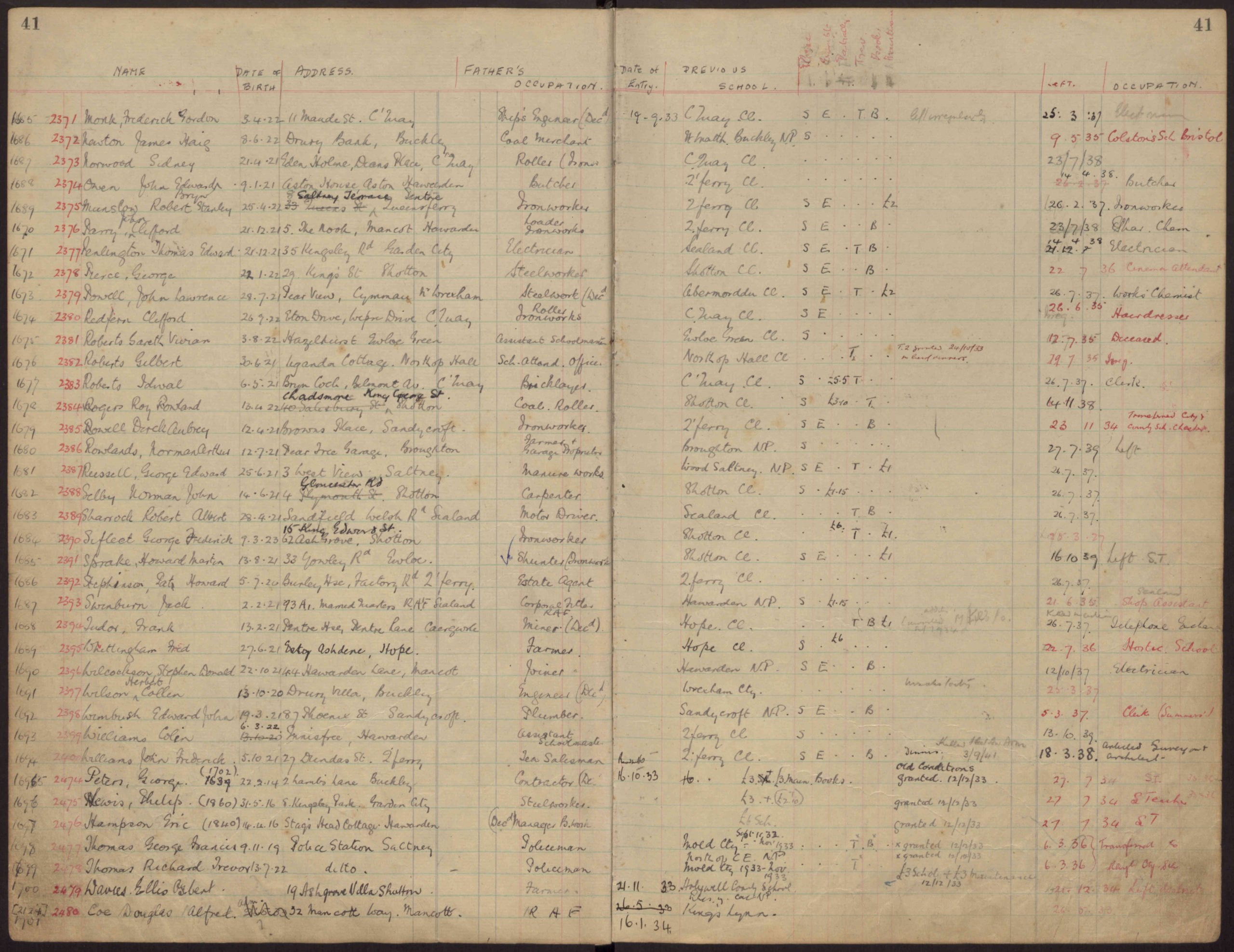 2899 WILLIAMS, Ivor Christopher Date of birth – 11th April 1926, 29, Dundas Street, Queensferry, Father – Manager Bakery. Date of entry 16th September 1937. Sealand Cl. £1 15s Date of Leaving – 6th October 1942 – Bank.