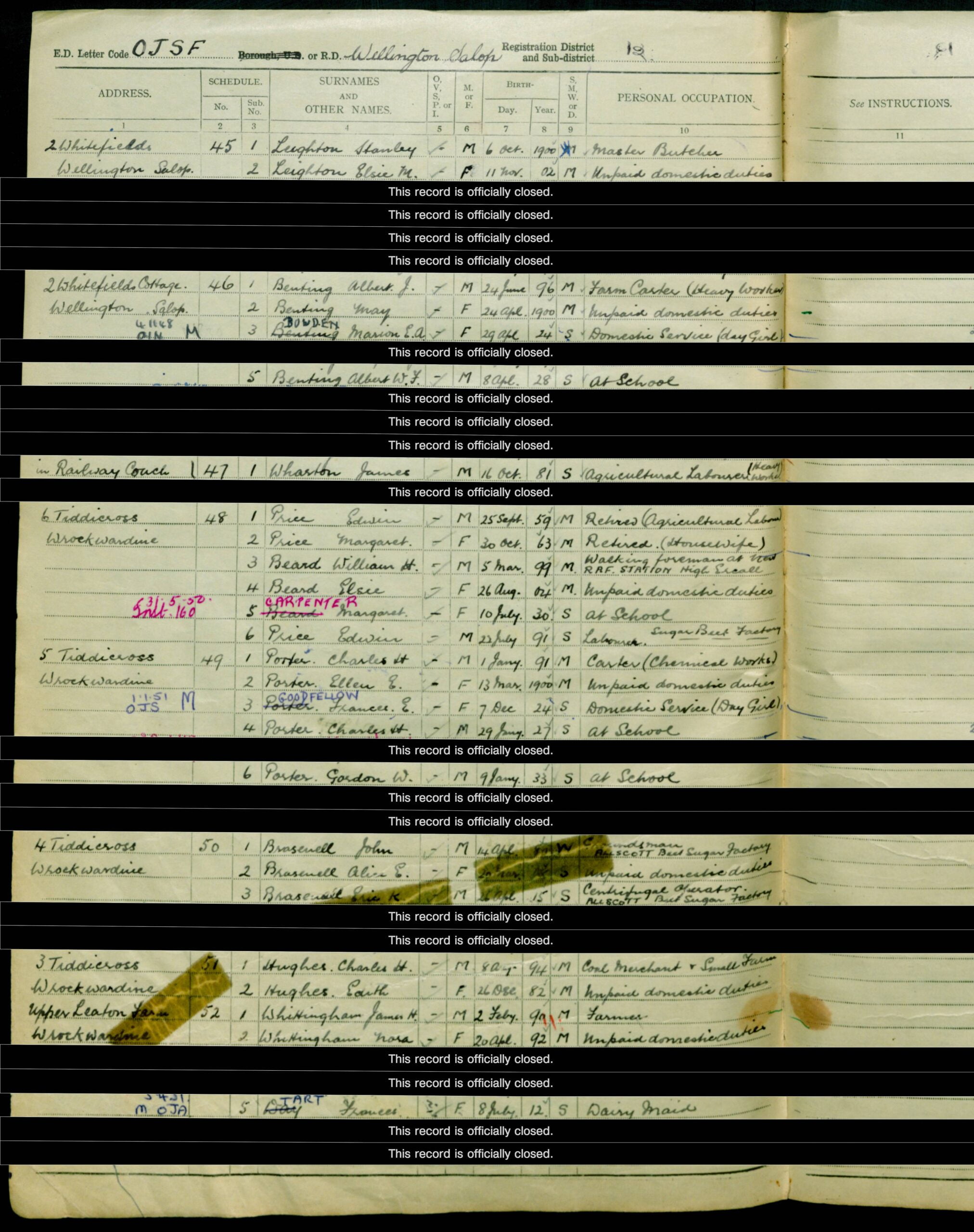 We do see Leonard Price living with his grandparents at 6, Tiddiecross, Wellington, Shropshire on the 1921 census, which was taken on the 19th of June 1921. Edwin Price aged 61 years and 9 months old, was head of the household and a Farm Labourer (On his own account). His wife Margaret, aged 58 years and 8 months old was doing ‘Home Duties.’ Their son, John Price was 27 years and 5 months old, single, and a Farm Labourer for Mr. J. Phillips, Whitefields Farm, Wellington, Salop. Their daughter, Dorothy Gray was married and aged 21 years, she was also doing ‘Home Duties.’ They had 3 grandchildren living with them, Leonard Price, age 11 years and 3 months, Raymond Aubrey Gray, 1 year 6 months old and Dennis Ivor Gray age 6 months. There was an ‘Adopted’ child, Henry George Mitfall, age 2 years and 5 months old and also a visitor, initially written as a daughter, then crossed out, probably by the Enumerator and changed to ‘Visitor’, she was single and 16 years and 9 months old, she had been born in Wrockwardine, Shropshire.