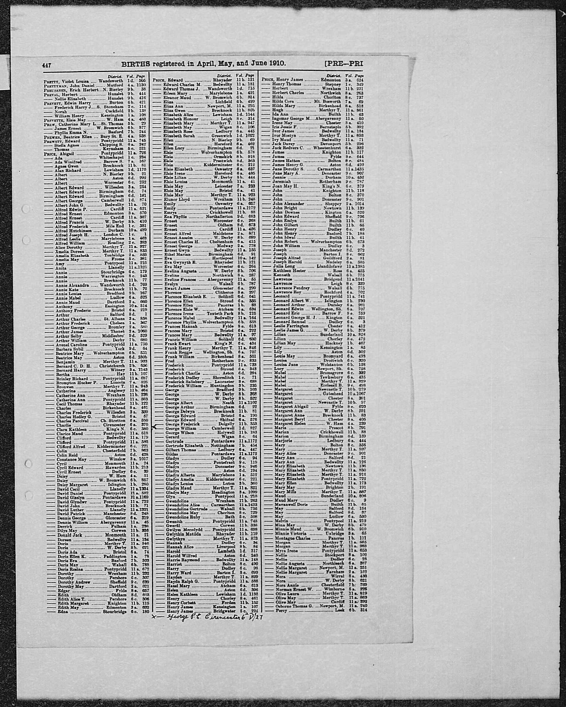 Leonard Edwin Price was born on the 26th of March 1910, but was possibly not registered before the next quarter – April – June 1910, therefore that would explain the difference in the registration and the birth (Registration District – Wellington, Shropshire Volume: 6a Page: 707). This according to his RAF Service Record.