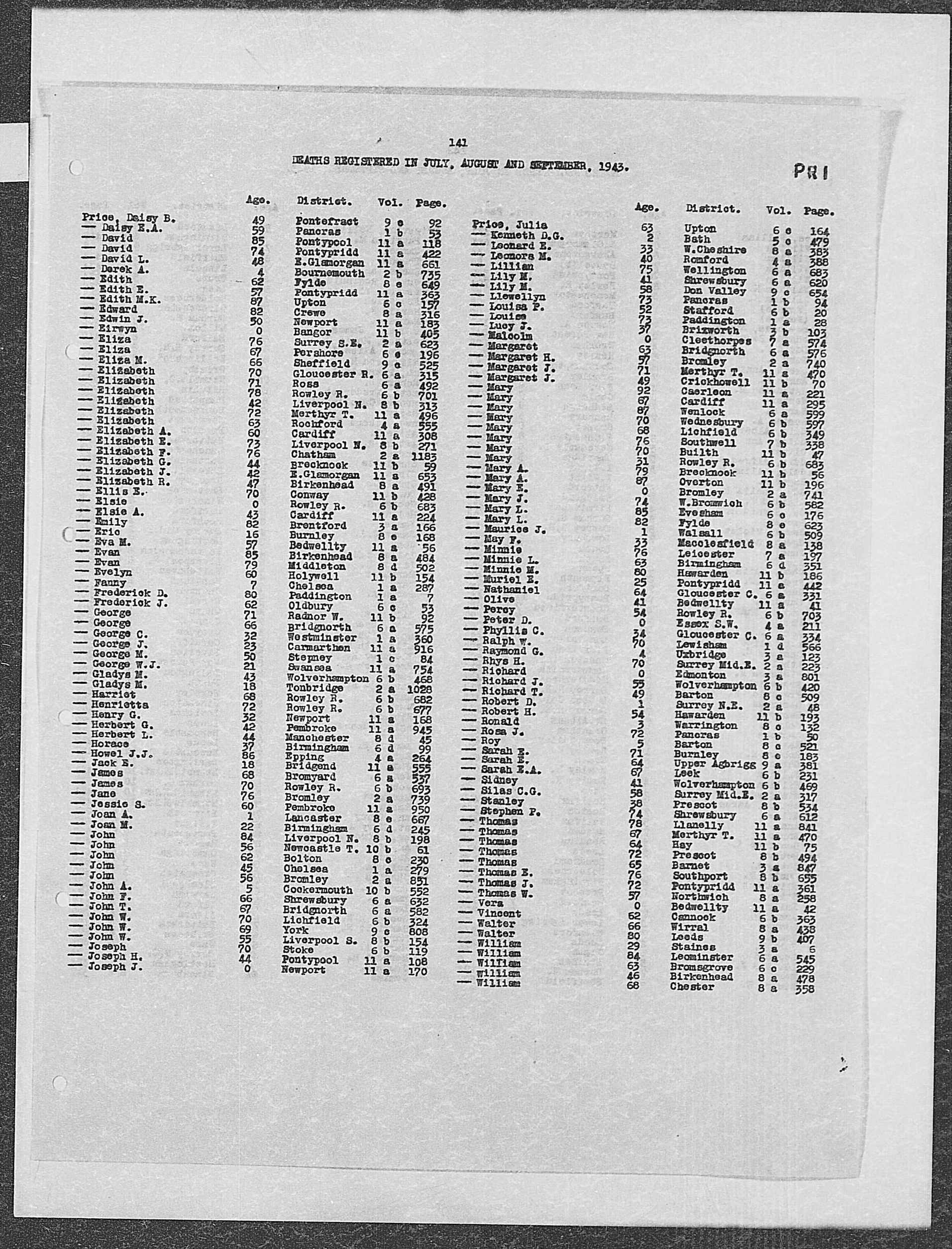 Margaret Ellen Price is seen again on the 1939 National Register, which was taken on the 29th of September 1939, where she is living with 2 others at Glen Ville Aston Hill, Hawarden, Flintshire, Wales. Margaret Elle Price gives her date of birth as the 20th of September 1908 and as most women who did not have a job on the is register, she was doing “Unpaid Domestic Duties.” June M Price, born the18th of June 1937, may be their child and there is a redacted record, but I do not know who that is.
