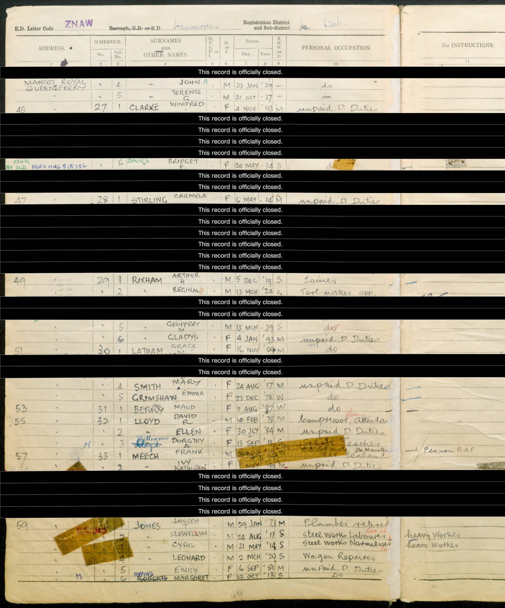 Also on the 1939 National Register living at 49 Hawarden Way, Hawarden, Flintshire was Gladys Rixham born 4th of January 1893 and as most women on this register without a job is doing “Unpaid Domestic Duties.” It looks as though Arthur H. Rixham, born the 5th of December 1919 was single and a Joiner. Reginald Rixham had been born on the 13th of March 1924, single and was a Tool Maker Apprentice. Geoffrey M. Rixham had been born on the 13th of March 1939 which confirms the date on his Baptism. There were 2 redacted or closed records, which usually indicated younger people. I can only think that Oliver was not on the Register above because he was included in the R.A.F. Camp records, or he was already abroad.