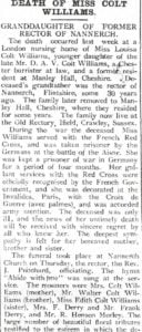 There are many Colt-Williams family members in the Nannerch Churchyard, including Louisa, as that is where her grandfather, David Williams,was a Vicar.