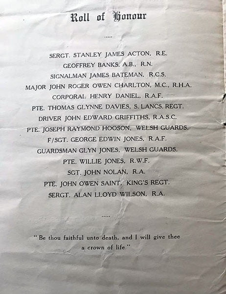 At a meeting held in the school at Northop when representatives of all the various places of worship in the Parish and members of existing local committees were present, it was unanimously agreed that a united effort be made to place a tablet in the Parish Church with the names of all from the Parish who had fallen in the war. As the representatives who attended had to report we hope that the next meeting to be held on June 2nd, a decisive step will be taken that a fund will be opened for the purpose and opportunity given to all to contribute to thus perpetuate the memory of those who gave up all in this life for their country. We venture to think that no better step could be taken and we think all will gladly contribute.