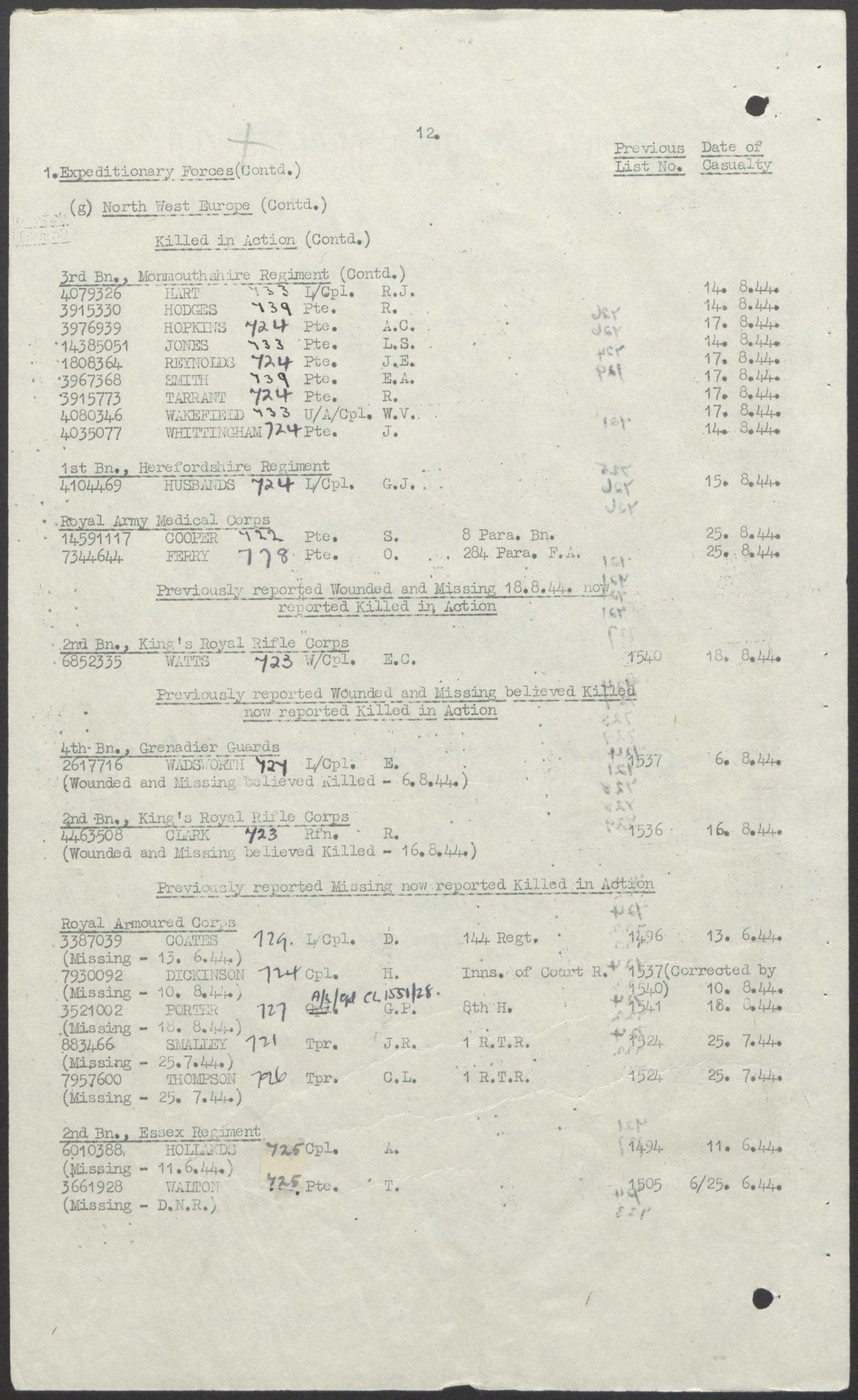 The 3rd Battalion was mobilised at the same time as the 2nd Battalion as part of the 159th Infantry Brigade, alongside the 4th Battalion, King’s Shropshire Light Infantry and the 1st Battalion, Herefordshire Regiment, part of the 53rd (Welsh) Infantry Division and trained alongside it in Northern Ireland and England. In May 1942 the battalion, together with the rest of the 159th Brigade, were transferred to the 11th Armoured Division and trained for another two years before, on 14 June 1944, the battalion landed in Normandy, just eight days after D-Day. They spent several weeks attempting to break out of the bridgehead in the vicinity of Caen as part of Operation Goodwood and Operation Bluecoat*. On 5 August they were nearly surrounded by enemy forces on Bas Perier Ridge and suffered heavy casualties and were reduced to half strength, forcing them to temporarily amalgamate with the 1st Battalion, Royal Norfolk Regiment of the 185th Brigade, of 3rd Division, which was temporarily attached to the 11th Armoured.[23][24] It was during the fighting that eventually lead to Corporal Sidney Bates, of the 1st Royal Norfolks, being posthumously awarded the Victoria Cross.[25]