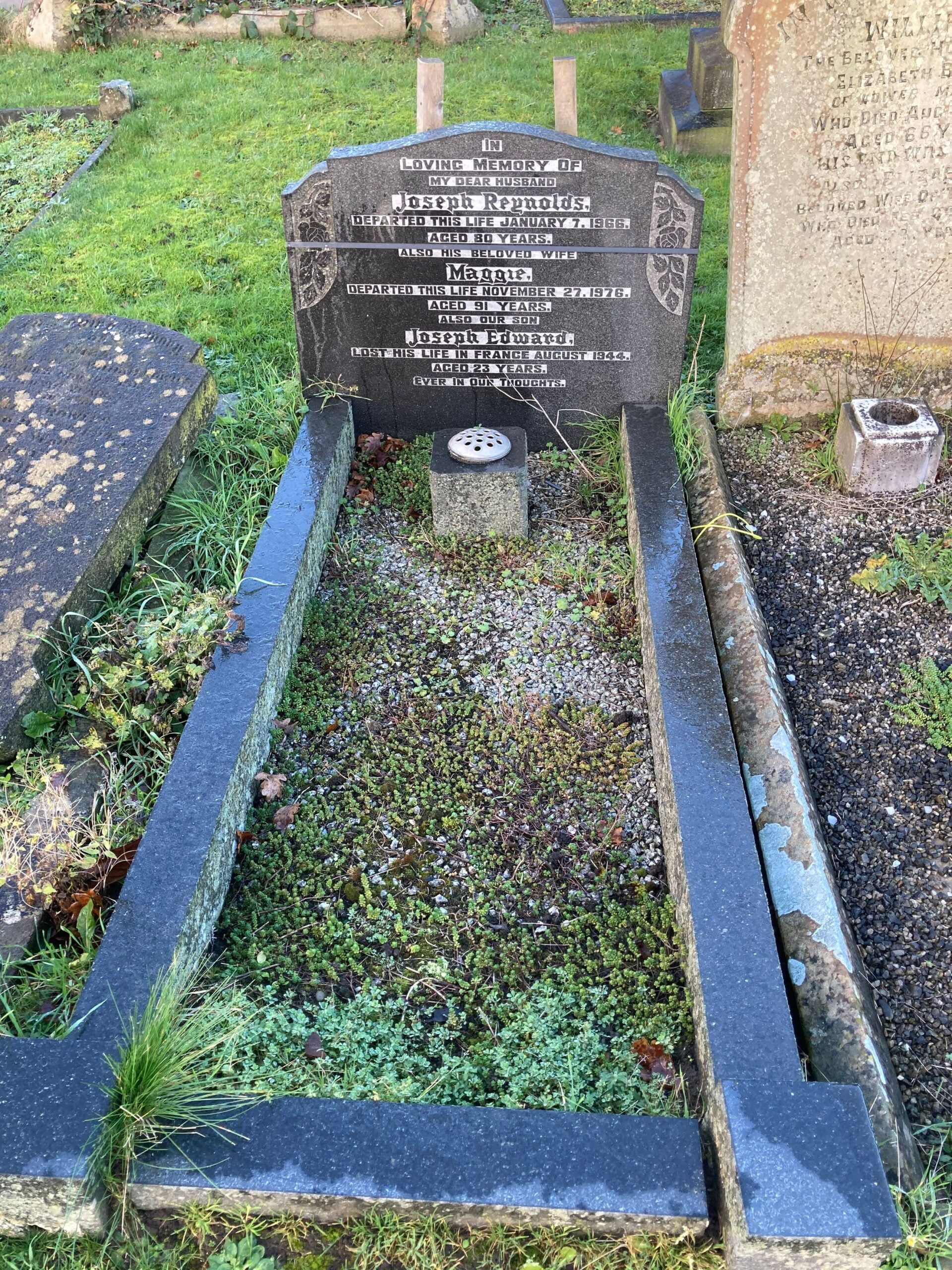 Joseph Edward Reynolds is remembered on the British Normandy Memorial, Column 304. His story will be added on their website: –