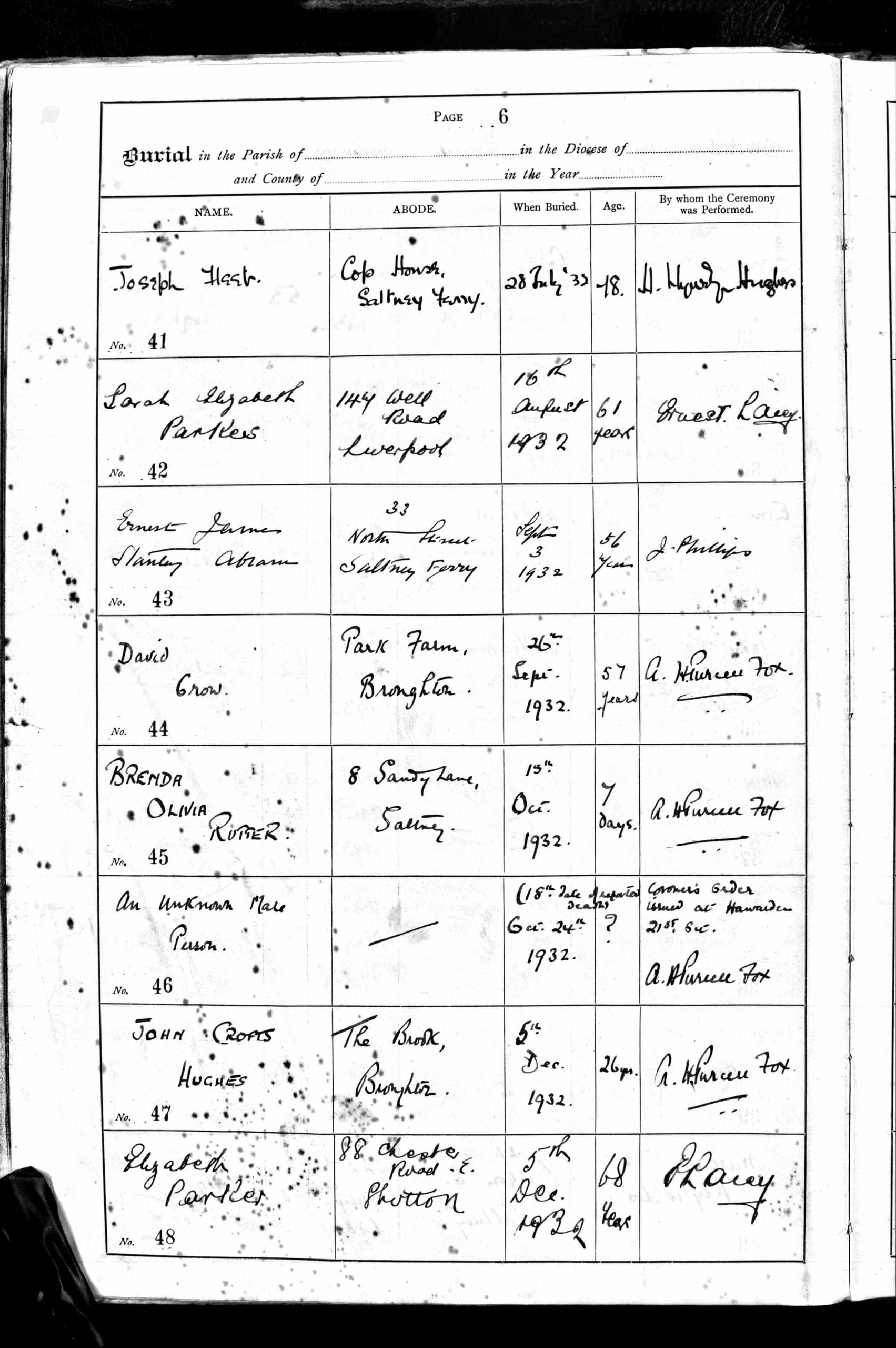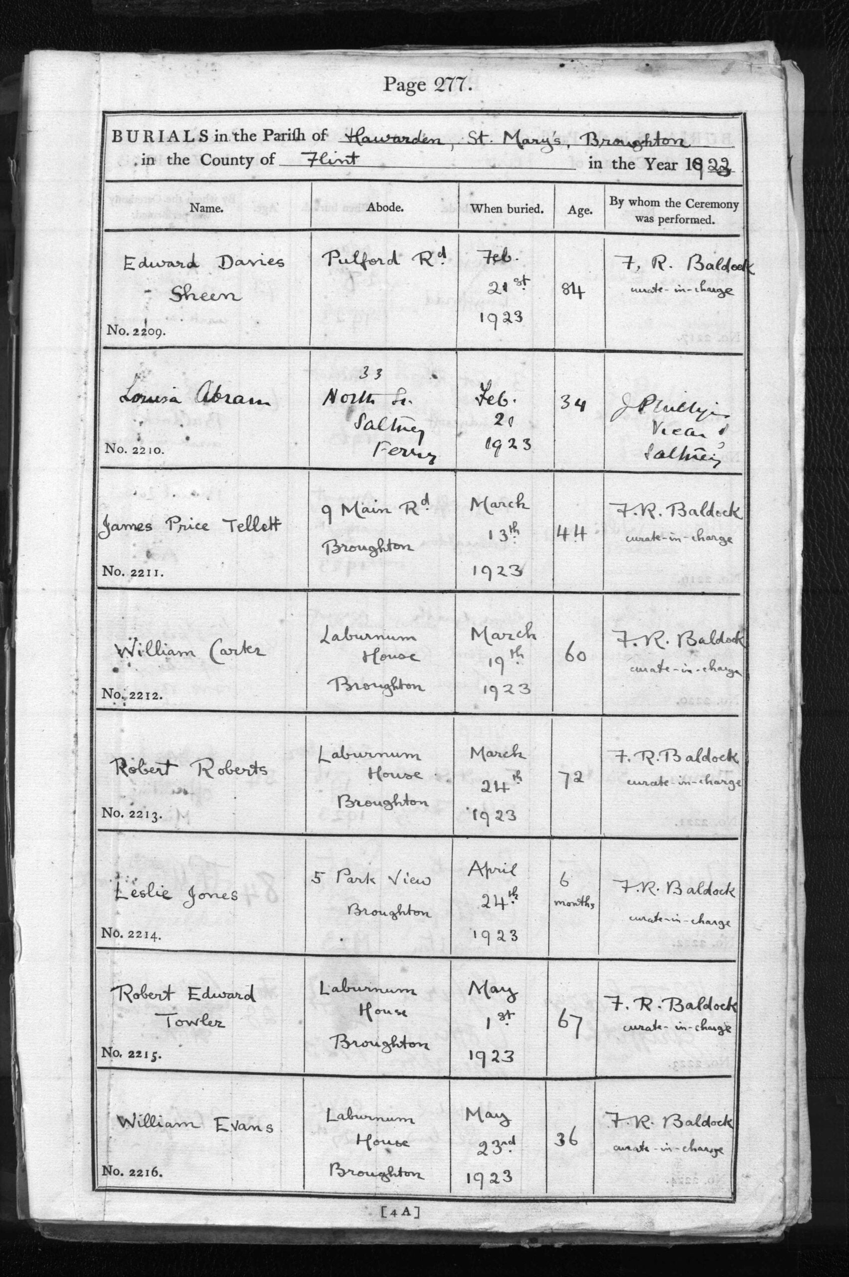 Louisa sadly died in 1923 and was buried in St. Mary’s Church, Broughton, Hawarden on the 28th of February, age 34 years, when Stanley was about 4 years old and Evelyn, just about 2 years old.