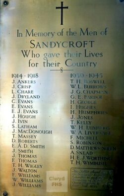 Sandycroft WW1 Roll of Honour, situated in St. Francis’s Church, Sandycroft
