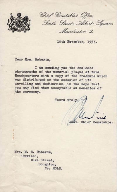 Glynne was a police officer in the Manchester City force before he joined the army. His address in Manchester was 22 Granville Avenue. He married a Nerquis girl, Mair Williams. (Mair was a founding member of the teaching staff of Glanrafon, the Welsh language primary school in Mold). Family members believe that Glynne was involved in the ill fated Dieppe landings in 1942.